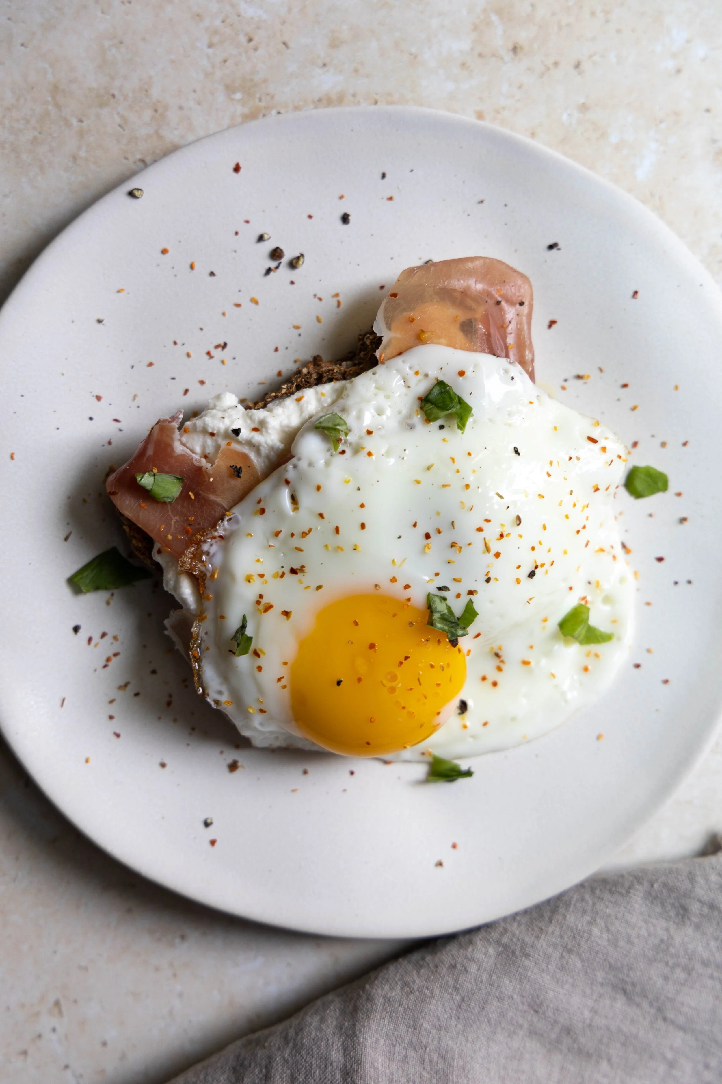 Open-Faced Ricotta, Prosciutto Egg Sandwich