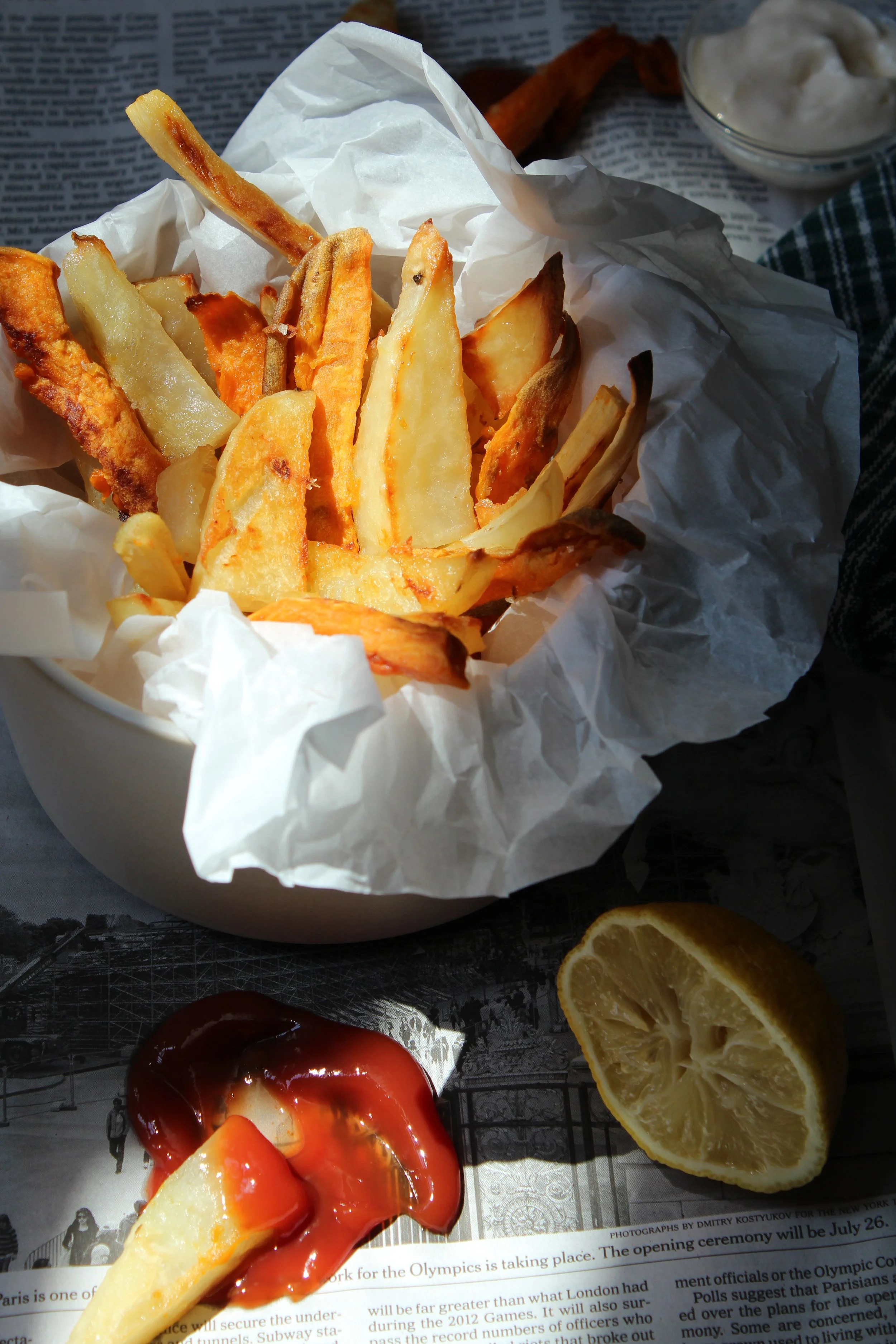 A choose-your-ingredient kind of recipe. The options for veggies here are endless, my favorite is sweet potatoes of any kind. Sometimes I will only do sweet potatoes to show off the rainbow of colors. I serve this alongside a freshly whipped up chipotle or garlic aioli, which you can easily make while the veg is roasting.